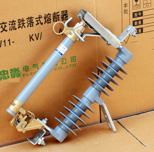 跌落式熔斷器由絕緣支架和熔絲管兩大部分組成,靜觸頭安裝在絕緣支架的兩端,動觸頭安裝在熔絲管的兩端,熔絲管由內層的消弧管和外層環氧玻璃管組成。拉負荷跌落式熔斷
