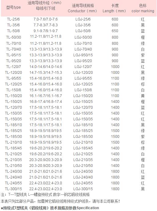 ■預絞式T型線夾(鋼芯鋁絞線用)技術規格及參數Specification